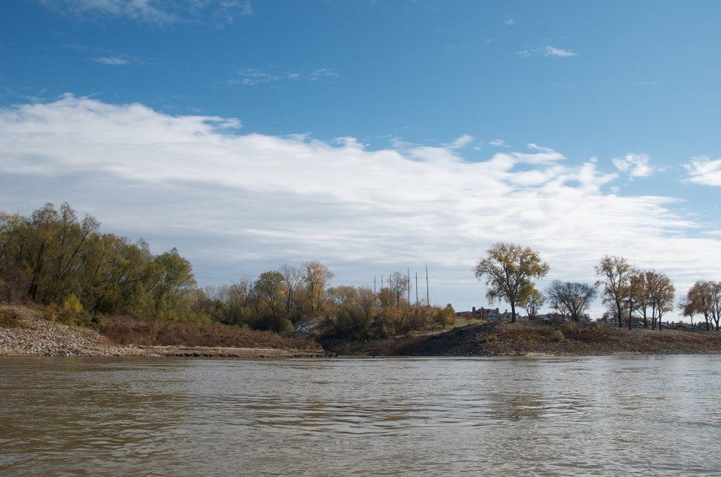 If the wind is out of the north, you won’t smell it until you’ve paddled past it. At low water the outflow gushes out of a giant pipe along the bank and creates a lively whitewater feature. Indeed from Google Earth it looks like a mountain river pouring into the Mississippi. If you didn’t know what it was you might be tempted to jump in with your playboat and do a couple of 360s in the whirlpools and surf the standing waves. In high water the pipe is covered but the smell remains, and the outflow emerges in giant billowing boils full of bubbles. Outrageous piles of foam accompanied the outflow until several years ago a de-surfactant was added and the foam disappeared.