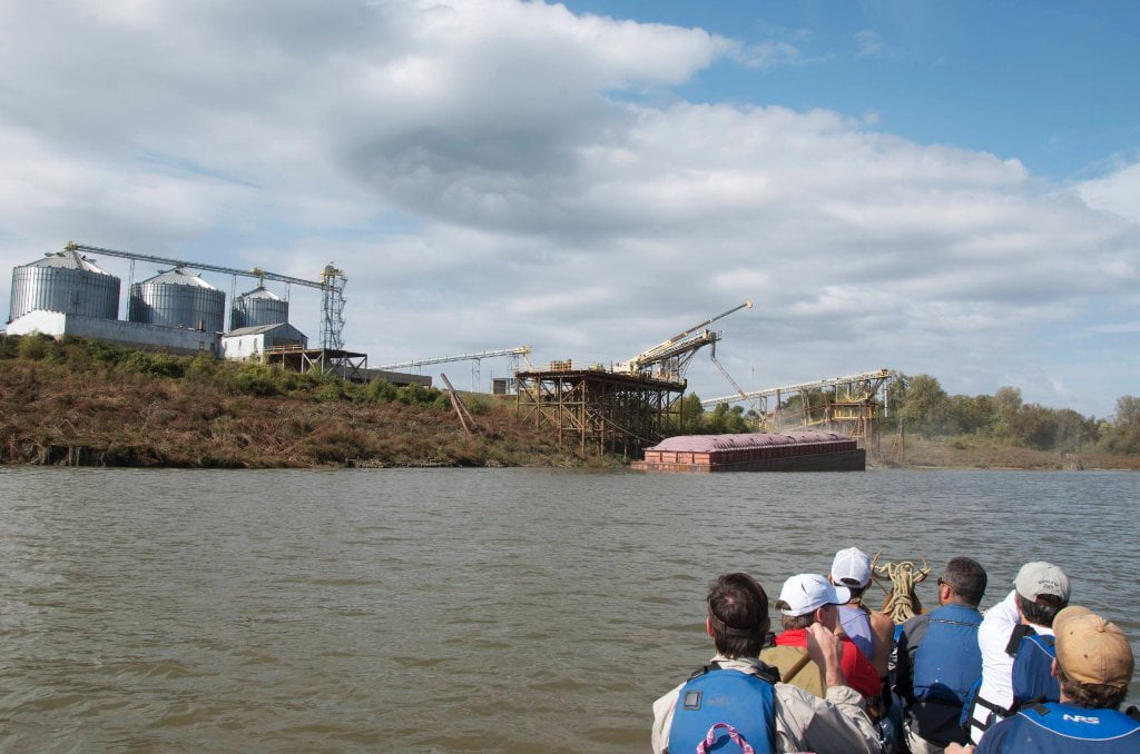 You may not see the Harbor opening until you are right on top of it, but you will see the signs of civilization rising above the tree line with radio towers, cell towers, docking facilities, grain elevators and such. Closer up look for the Mile 663 Green Mile Marker (Green Square). The harbor opening is 200 yards downstream on the right bank descending. You will see a flat parkland, and a road, and then a boardwalk reaching out to the river’s edge. This is the Helena River Park. You can camp in the willows here during low water. Low water results in a rocky climb over the rip-rap to get there, but bank full (35HG) you can sail into the trees and pick out the best spots. During King Biscuit Festival hundreds of campers fill the park and enjoy live blues — annually held during the 2nd full weekend of October. The Helena River Park was recently upgraded with a series of interpretive panels designed and implemented under the oversight of the National Audubon Society.